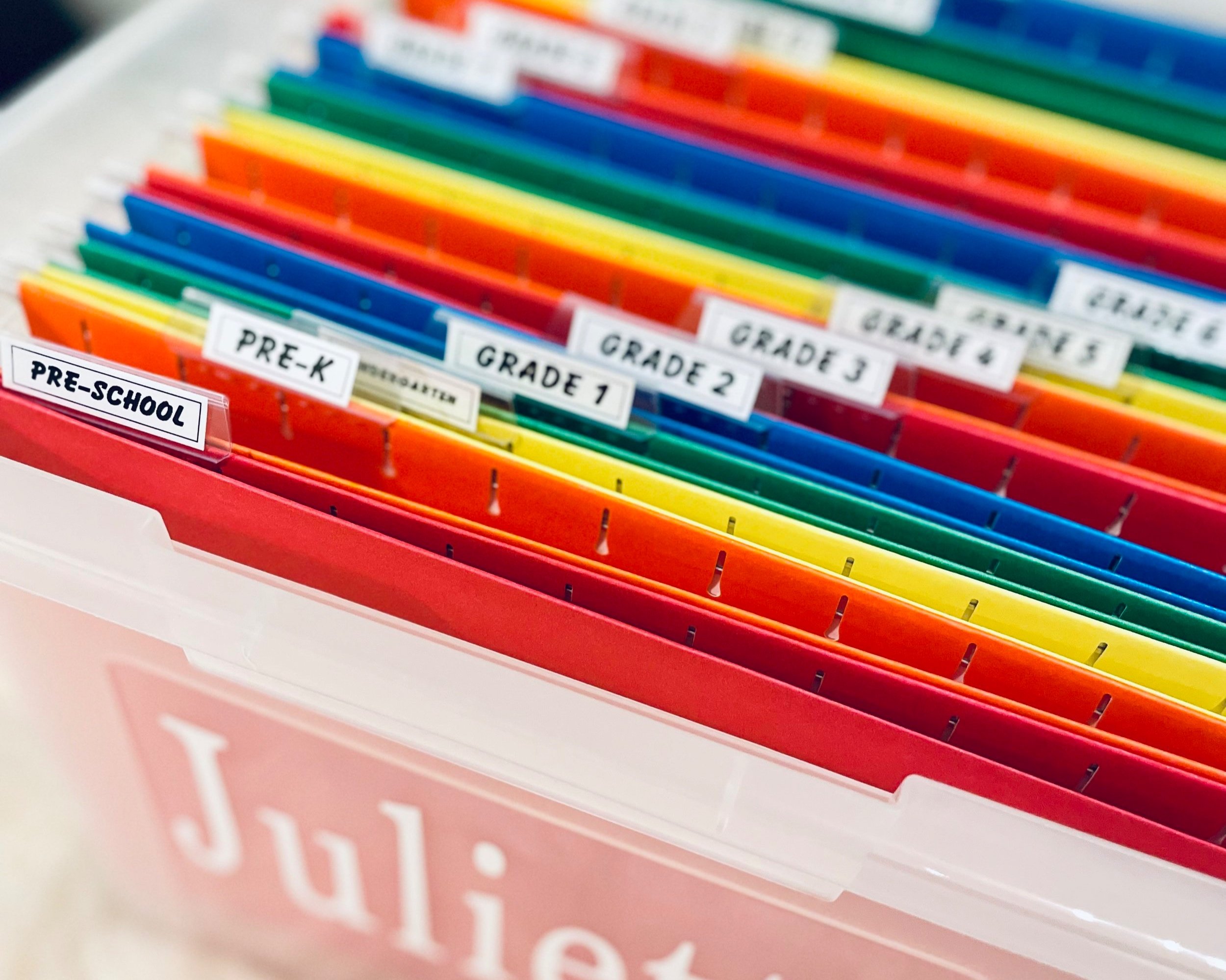 “The memory totes are a great way to keep important school documents as well as keepsakes for the year in one place. It is nicely personalized so it will be easy to find in a cluttered basement (Natalie can help with that too!), and it’s sturdy enough to last all through their school years!”